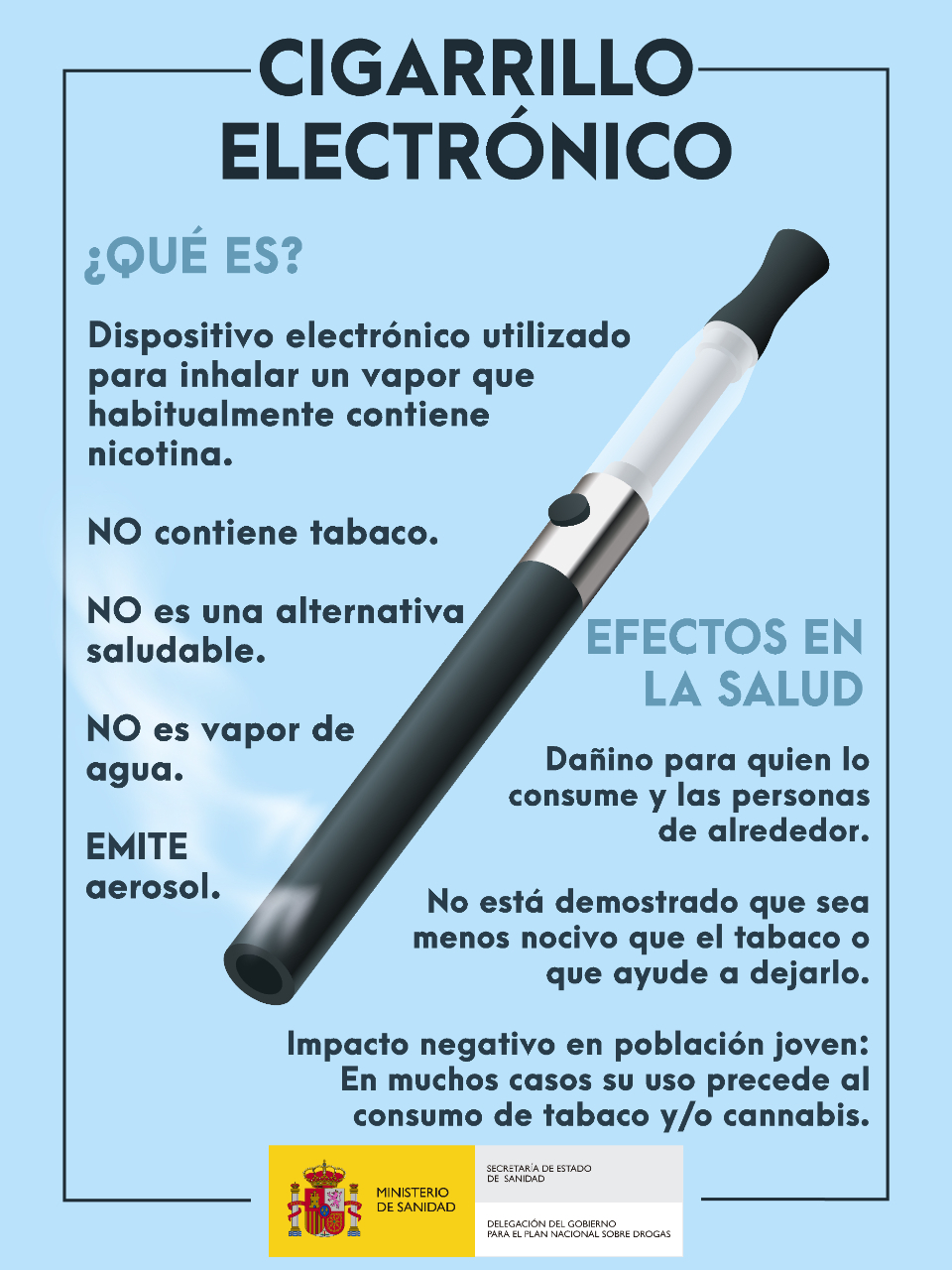- Infografía "Cigarrillo electrónico, qué es y efectos en la salud". Ministerio de Sanidad (JPG, 600 KB)