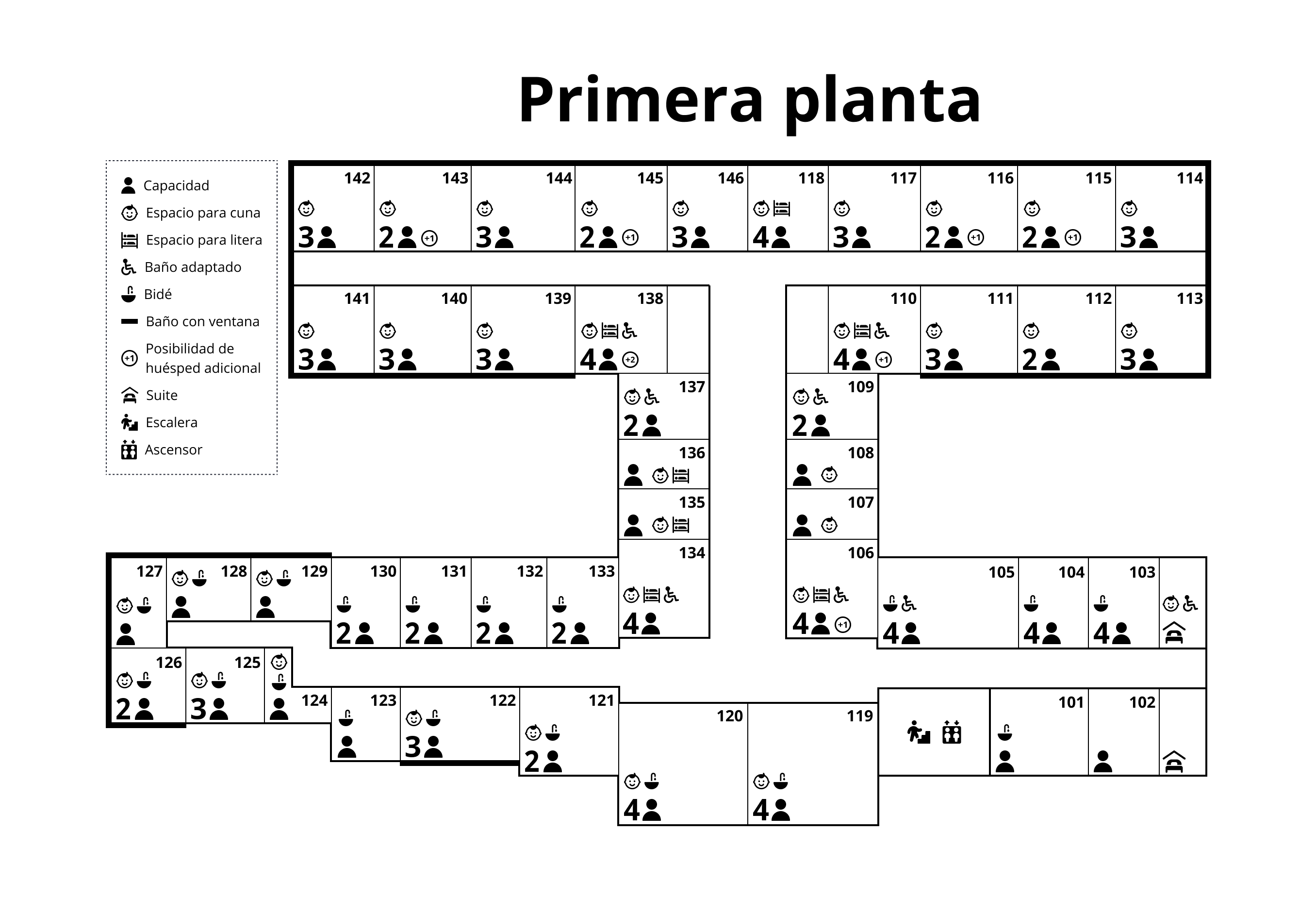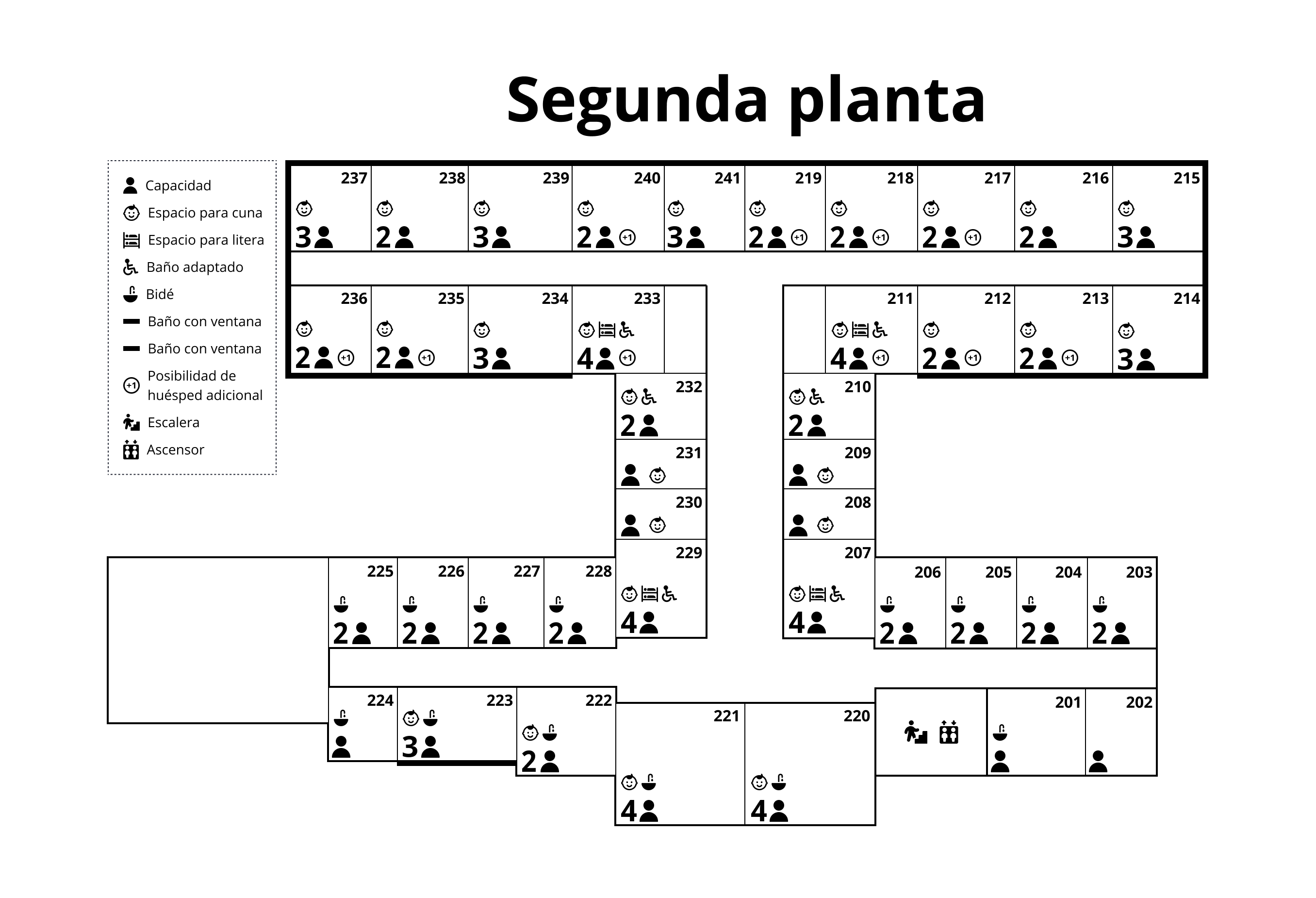 Contamos con numerosas habitaciones para hasta cuatro personas, accesibles y adaptables a las necesidades de cada huésped