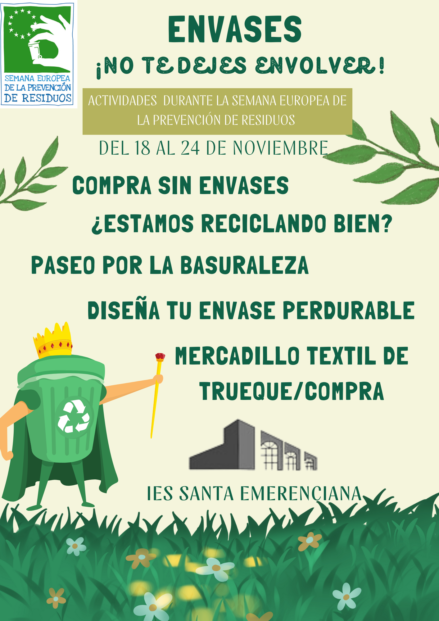 El alumnado de 4º ESO de la asignatura "digitalización" elabora un lema y un cartel para concienciar a toda la comunidad educativa sobre la generación de residuos de envases. El alumnado de 2º y 3º ESO vota el mejor trabajo presentado.