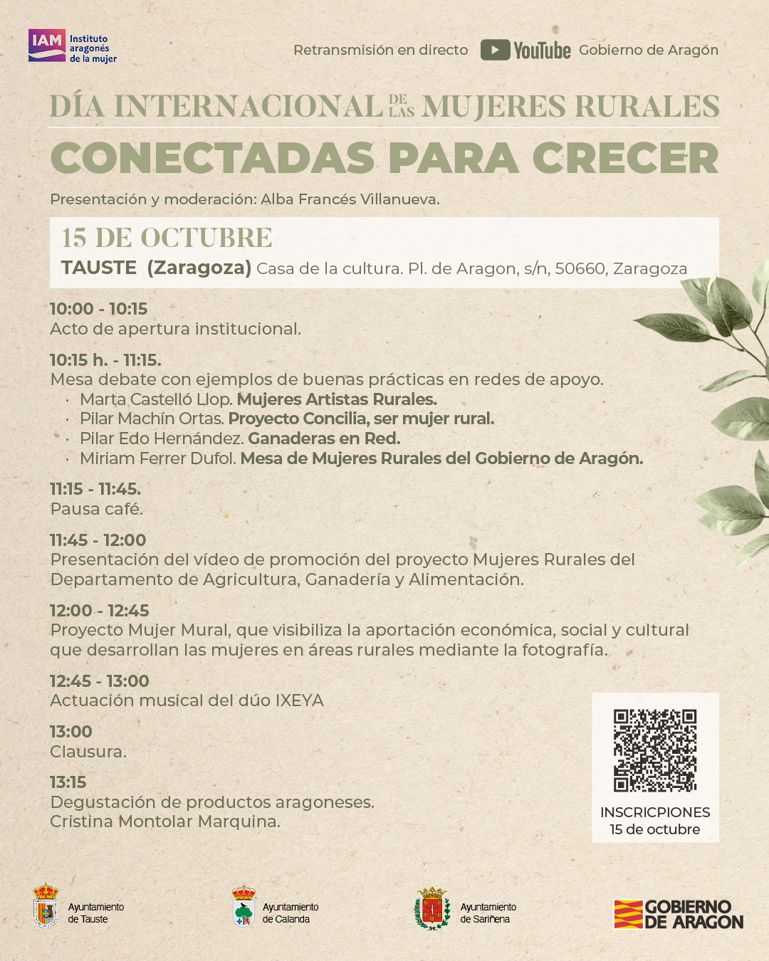 El evento principal de este 2025 tendrá lugar en la localidad zaragozana de Tauste. El lema escogido es “Conectadas para crecer” y se pretende poner en valor las redes de apoyo mutuo y cuidado que han caracterizado siempre las relaciones interpersonales de las mujeres, especialmente en el ámbito rural.