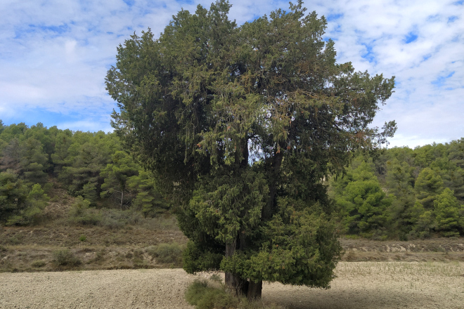 Información y ficha técnica del árbol singular de Aragón Sabina Cascarosa.