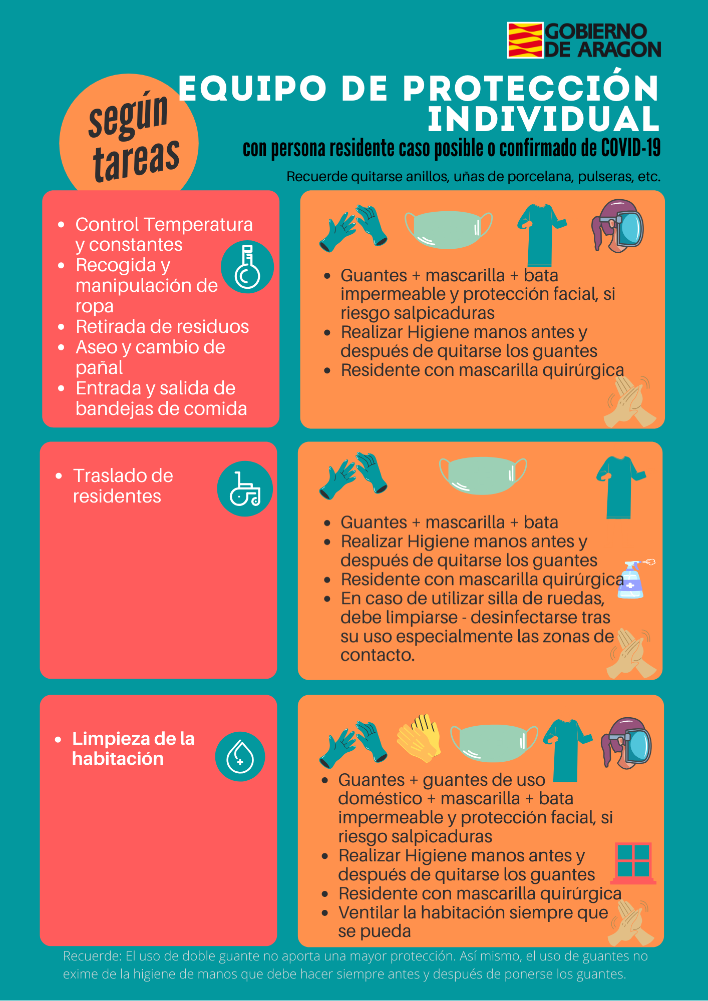 - Equipo de Protección Individual (EPI) según tareas a realizar con las personas residentes.